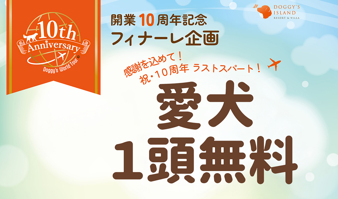 愛犬1頭無料!感謝を込めて!祝・10周年ラストスパート企画