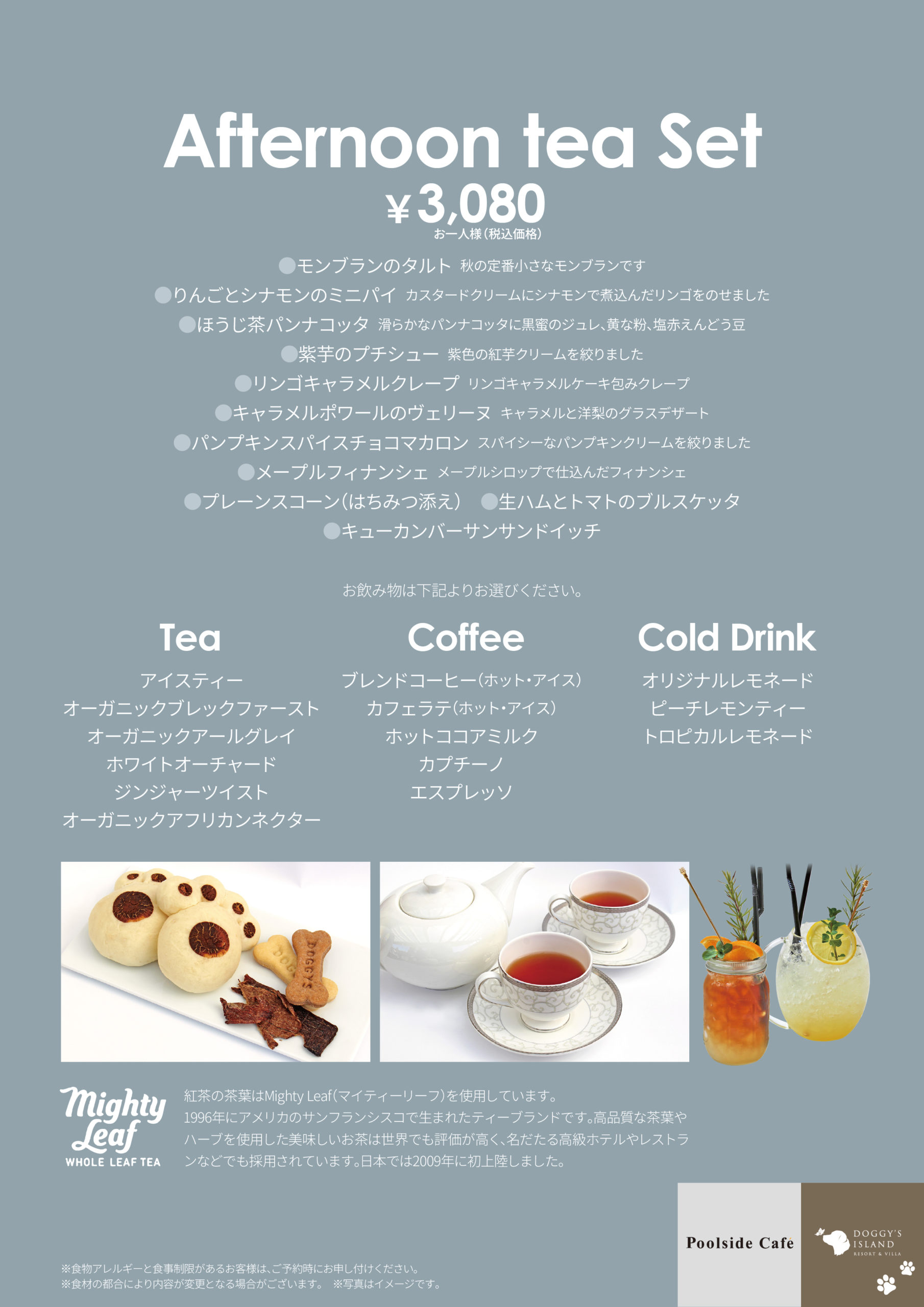 ヤギミルク、オーガニックドッグフードなどが並ぶ愛犬用ビュッフェもご用意しております
