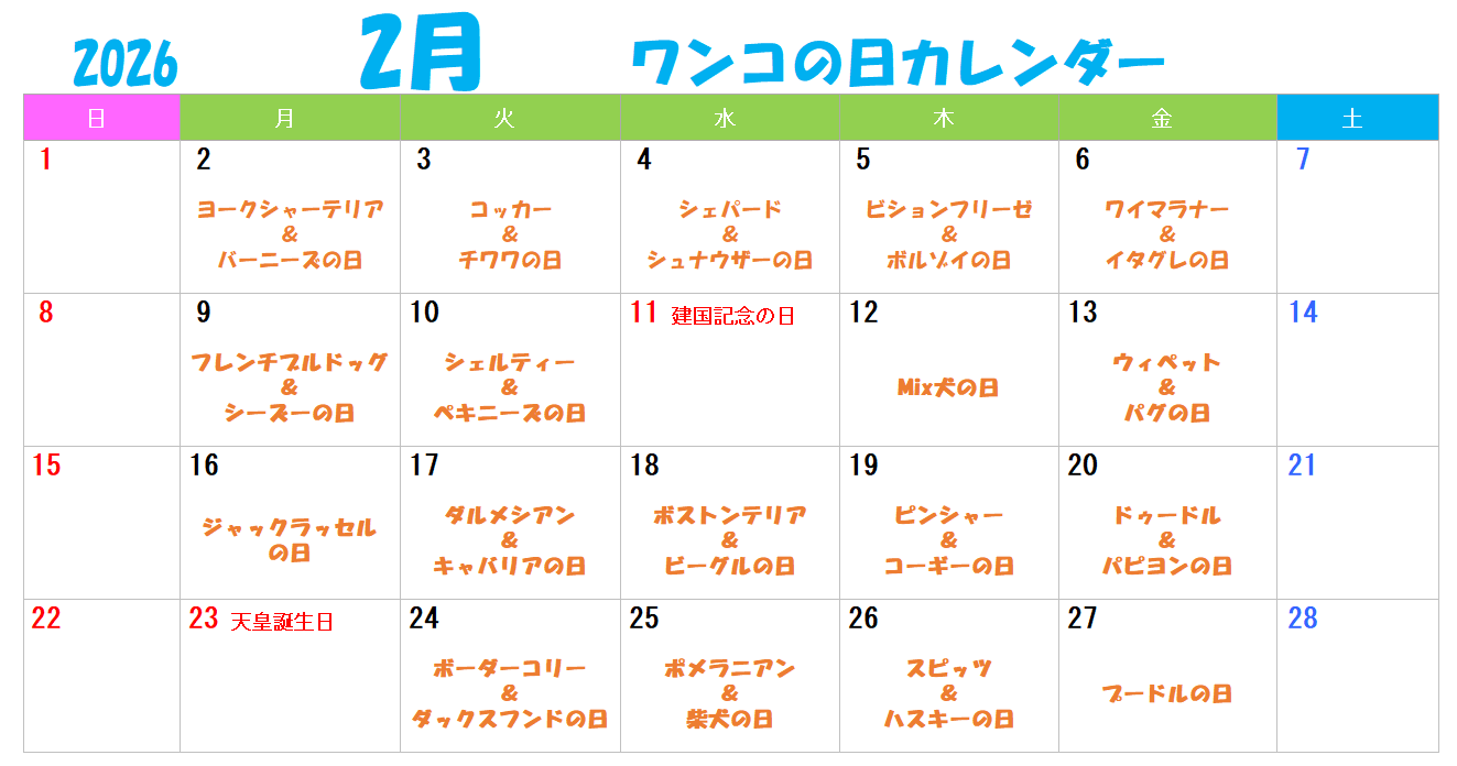 平日限定!『あつまれっ! ○○ワンコの日!』のカレンダー更新いたしました!