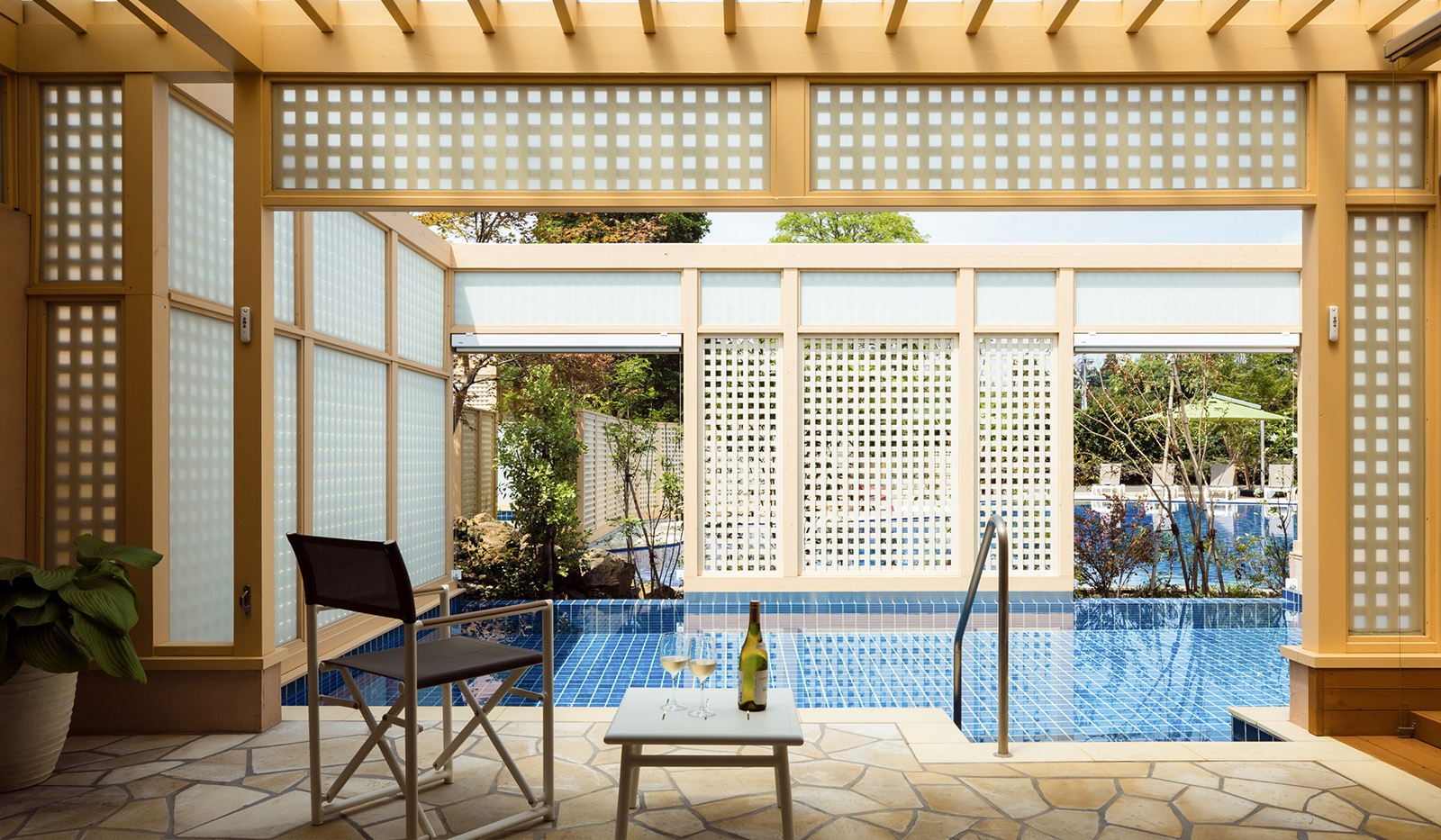 プライベートプールを設えた客室と専用露天風呂を備えた客室の2タイプがあります。